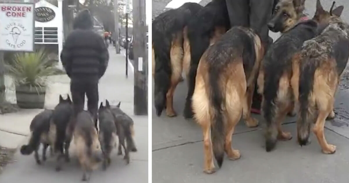 En video med en mand, som går med sin flok af hunde uden snor, er blevet spredt på nettet i flere år – hvad de gør er helt utroligt.