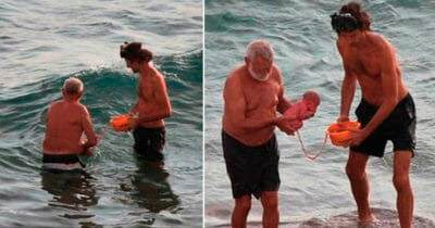 Alle troede at kvinden fødte en baby i havet – så afsløres sandheden bag de utrolige billeder